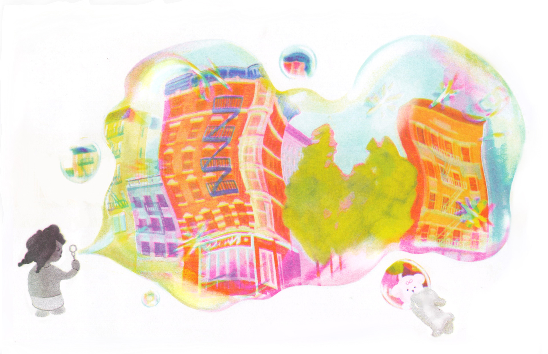 Gouache, Posca pen, colored pencils.